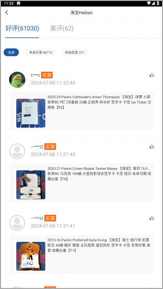 卡淘可以让大家在这里自由的交易各种球星卡,无论是新品还是二手品都能找到,让大家找到自己想买的球星卡,每天都能为你及时更新各种球星卡,每个球星卡都有具体的信息以及价格,让大家根据预算来购买心仪的卡。
