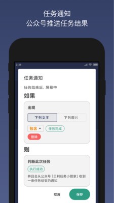 - 任务通知:任务结束后,可以从公众号收到任务执行结束的通知
