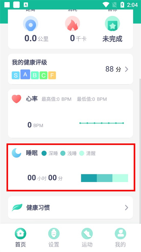 1、来到FitPro的首页,找到睡眠选项,点击进入页面;