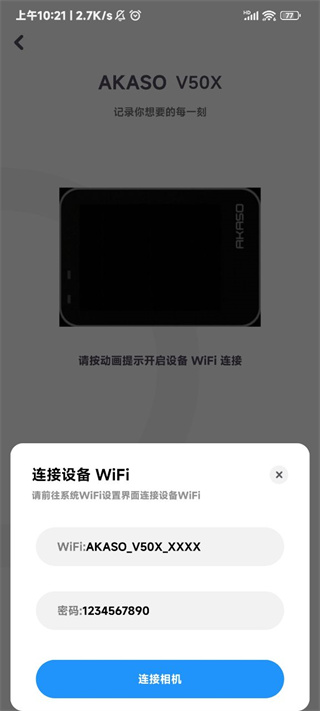 6、这时你只需要前往系统wifi设置页面连接设备wifi,点击连接相机等待片刻就能连接成功。