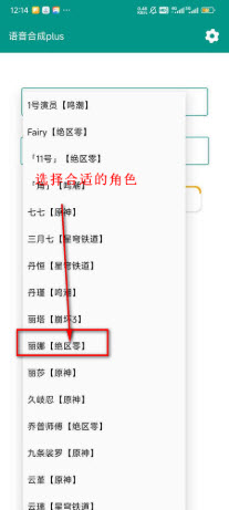 2.点击页面中第一个输入框,出现角色列表,点击喜欢的;