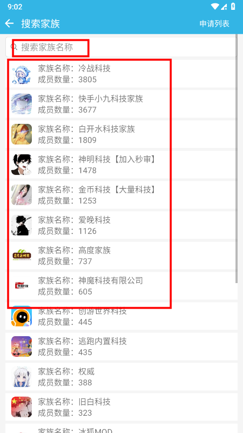 如果选择加入其他家族,会展示所有家族,支持输入家族名称搜索,找到您要加入的家族;