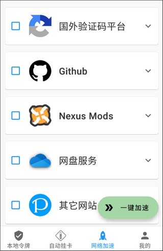 2、打开软件,找到网络加速,往下拉,找到其他网站中的某个P图网站,勾选,点击一键加速