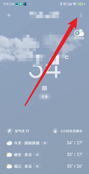 1、在本站下载并安装小米天气app,来到小米天气首页后点击右上角的“+”号添加城市