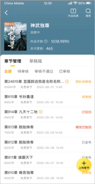 2、【写作】:支持基础作品管理、章节管理、基础写作等功能。