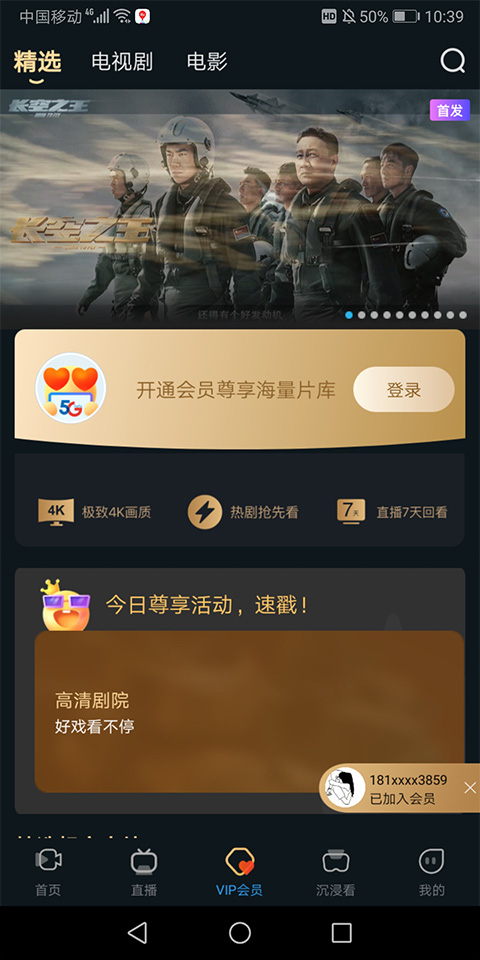 用户可以通过进入app【vip会员】页面中点击【开通会员】进行领取