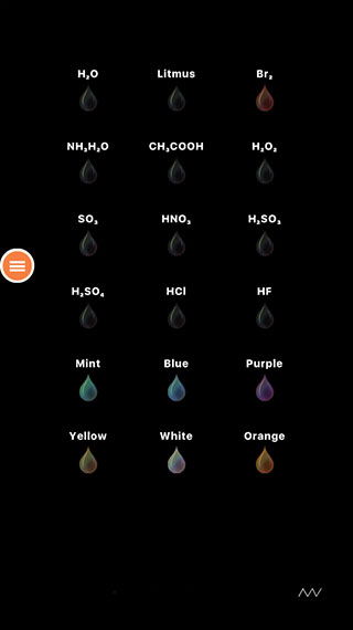 2、各种不同形态(气、液、固)的物质(或材料或试剂)均有汉语名称以及对应化学式显示,你只需要选中你心目中的那个丢进烧杯即可。