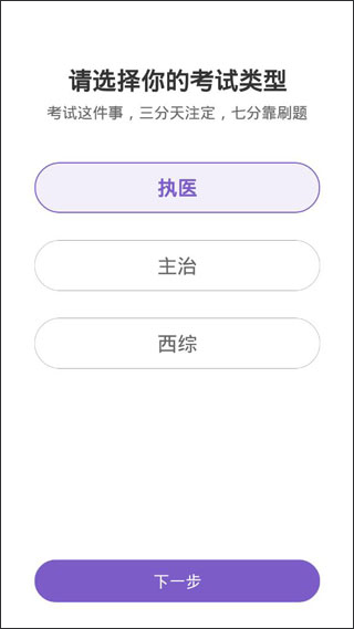 3、进入软件之后会看到练习、题库、课程、我的四个板块,其中在练习板块中,会根据您所学的医学类型,每日罗列出10道题目供您学习积累;