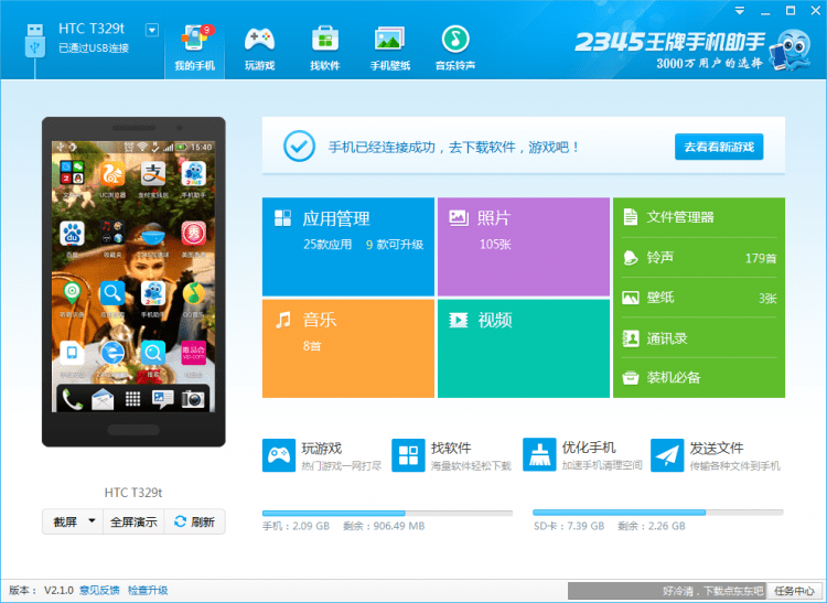 步骤1:将手机与2345手机助手电脑版成功连接。