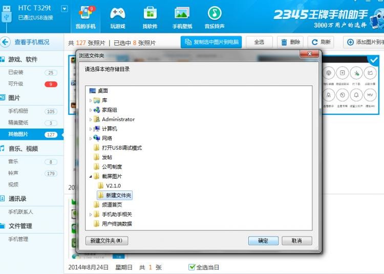 步骤3:选择自己要保存的位置,然后点击确定,即可成功把手机中的图片导入到电脑中。