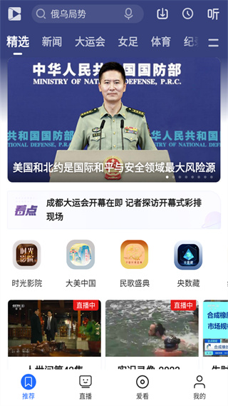 2、新闻联播等热门节目全网首播:海量视频点播服务,纪录片、电影、综艺、动画等内容,任你过滤观看; 还涵盖电视报道、央视权威评论、时事热点新闻、精彩体育赛事等高清视频。