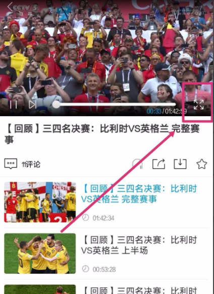 3、打开央视影音App,点击需要投到电视的视频,点击全屏工具