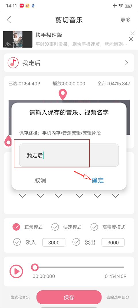 设置好你想截取的音乐片段之后下方有个播放键这里可以听你刚刚截取的那一部分,完成之后点击保存。