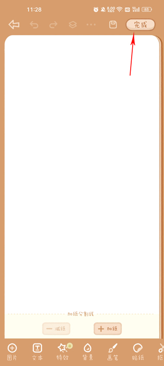 6、支持选择添加图片、背景图片、文本、贴图等,完成后点击右上角的完成,最后还能分享到qq、微信、空间等知名社交平台。