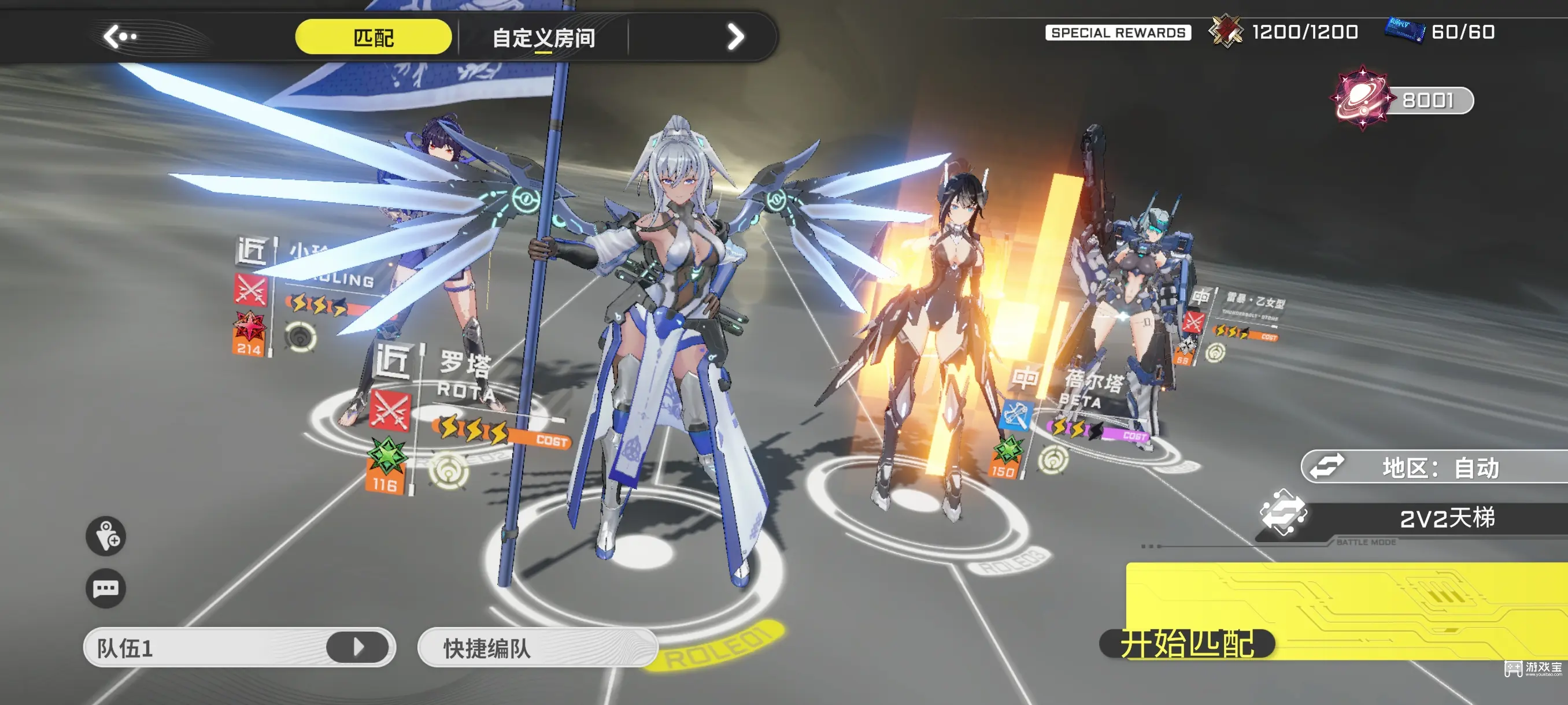 目前1v1,2v2我觉得比较好的角色上场,内测有几个角色是高伤害的,比如小玲,阿依达这两个目前还没测。