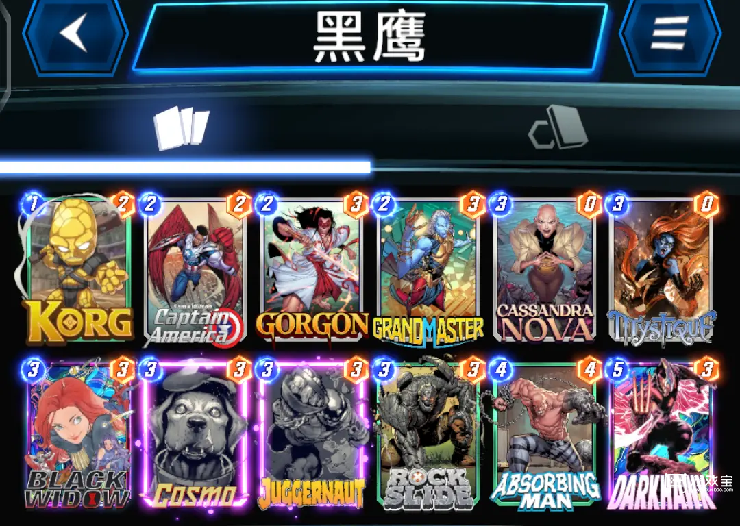 1.玩家可以用12张卡牌组建自己的卡组,每张卡牌都代表一个漫威的经典角色,每张卡牌都有自己独特的能力或特殊效果