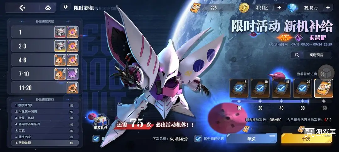 合理利用每天3次支援机体出战。尽量安排到最后几关使用支援机体,填补后期自己机体的战损。