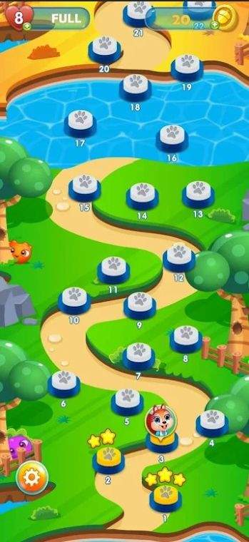 1、操控小松鼠收集气泡,同时躲避各种障碍,完成关卡挑战;