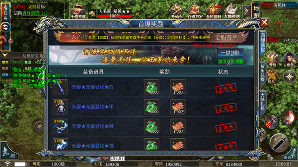 4、首爆奖励打怪就送,高阶装备直接免费领取。